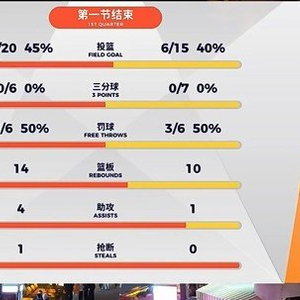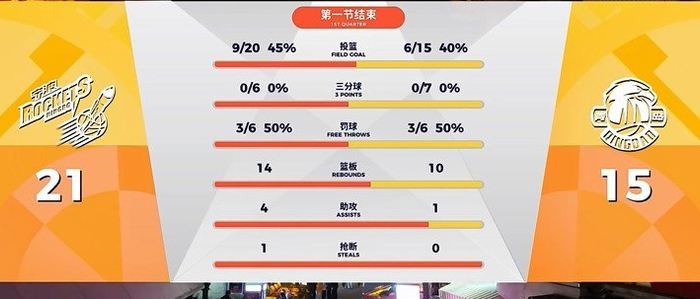 第一节,青岛进攻乏力,全队15投6中,命中率40%,三分7中0,罚球6中3,命中率也只有50%。