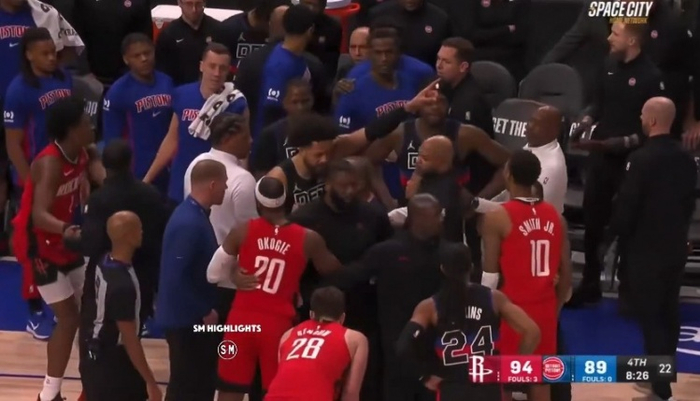 活塞火箭冲突升级 坎宁安→火箭球员:都给我退后 我可要揍你们了 NBA综合 01.2411:13 关注 GIF-活塞和火箭冲突 坎宁安拉开霍兰后指着火箭球员说道:你们都给我退后!我可要揍你们了,别再惹我们了,笨蛋! 【来源:直播吧】