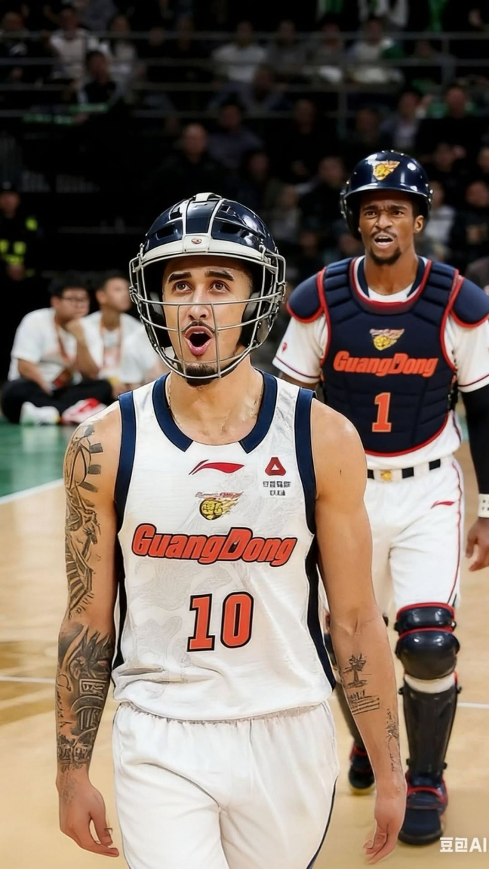 直播吧1月25日讯 广东外援萨姆纳社媒更新,晒出了一张自己和奎因身穿护具打球的P图。