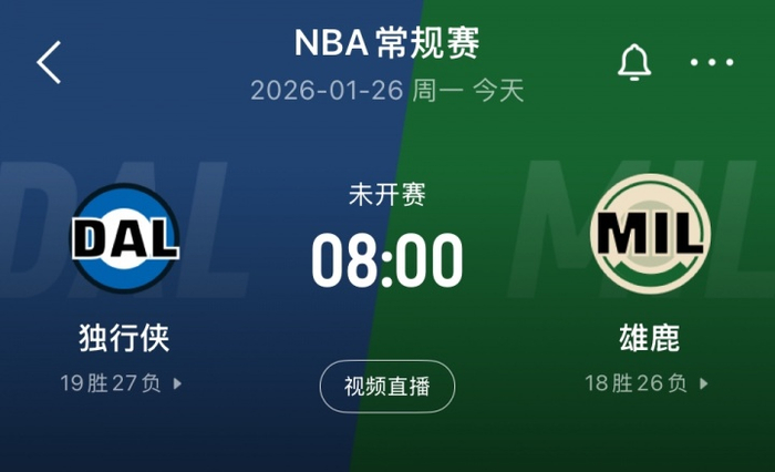 直播吧01月26日讯 ESPN名记Shams报道,原定北京时间今日早晨8:00进行的雄鹿主场迎战独行侠的NBA常规赛,因天气原因推迟。