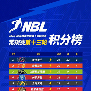 【积分榜】2025-2026赛季NBL常规赛积分榜(截至第十三轮结束)