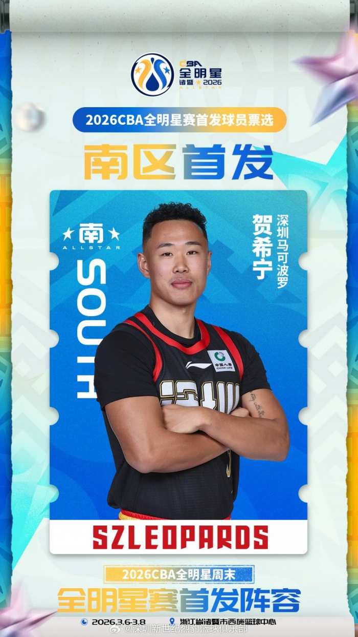 贺希宁成功入选南区首发阵容,感谢每一位投出宝贵一票的球迷,没有你们的“亿点点”支持,就没有这份荣耀~