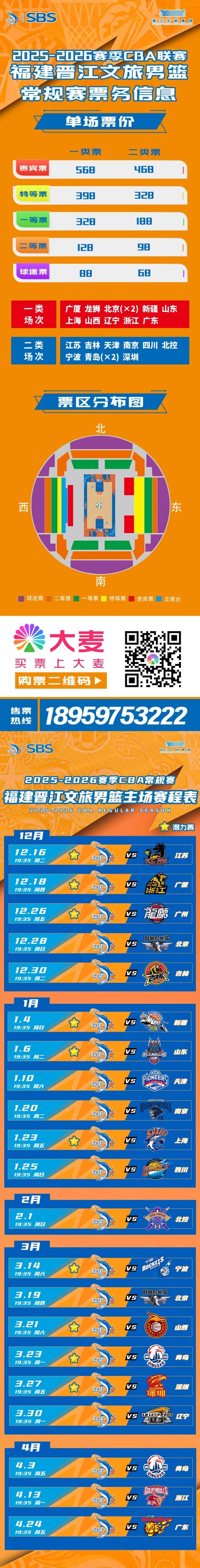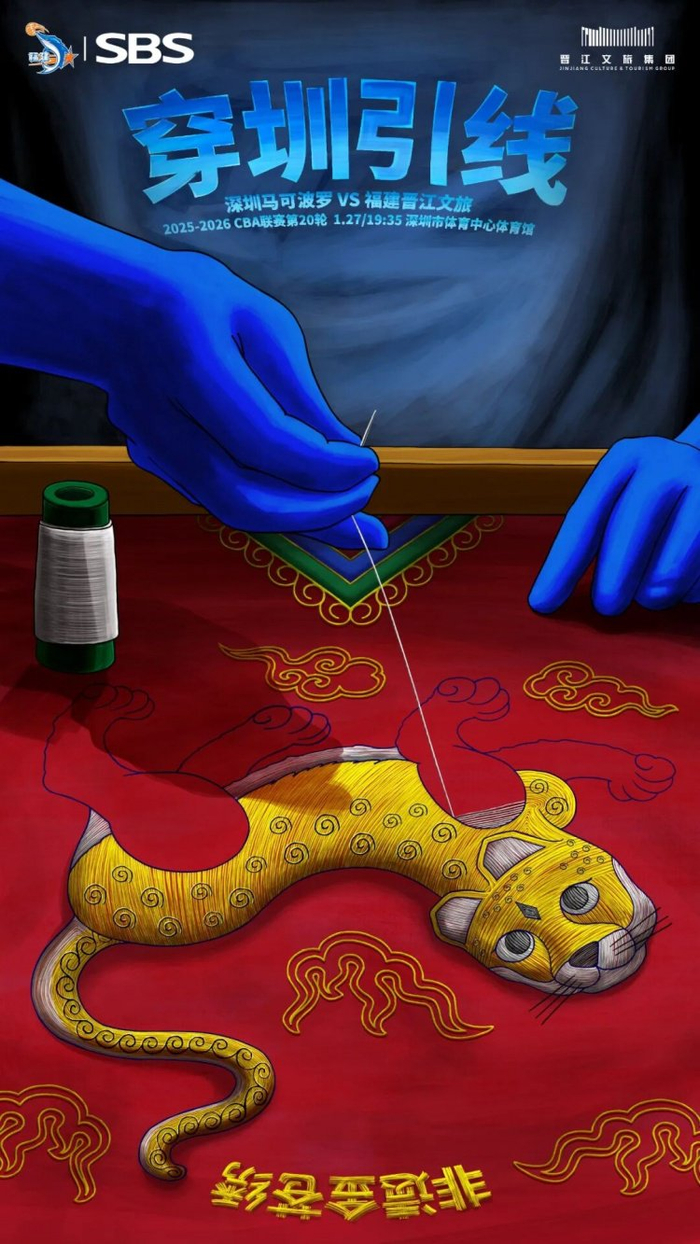 2025-2026赛季CBA常规赛第二十轮明晚鸣锣打响,福建晋江文旅男篮开启两连客之旅,明晚(1月27日)19:35挑战深圳马可波罗男篮。