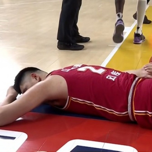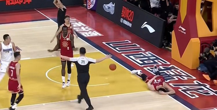 没必要啊!刘传兴低位上篮被马帝昂拽翻在地 后者吃到违体犯规