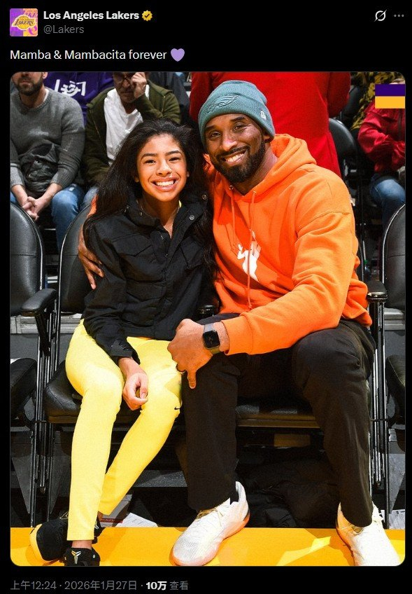 湖人官方晒出了科比和吉安娜两人的合照,并配文:曼巴&曼巴精神永存。