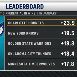 三节领先76人50分!黄蜂本月赢球比赛场均净胜23.9分 联盟第一!