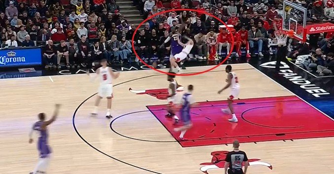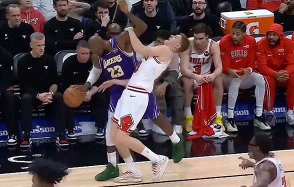 被贴得很紧!詹姆斯持球转身搂倒许尔特 被吹进攻犯规