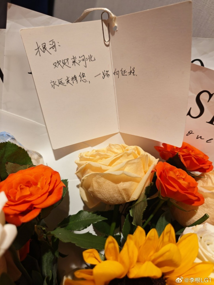赛后,焦作文旅总经理、前中国男篮队员李根发博写道:“第一次来河北比赛,这里的球迷可太热情了,图一是刚到第一天球迷朋友送的球星卡,图二是昨天比赛现场球迷朋友送的花花,图四、五是在高铁上热情的河北球迷给球队送的各种水果,感谢热情的河北球迷,这么近那么美,周末到河北,这么中那么燃,欢迎大家到河南,爱你们。”
