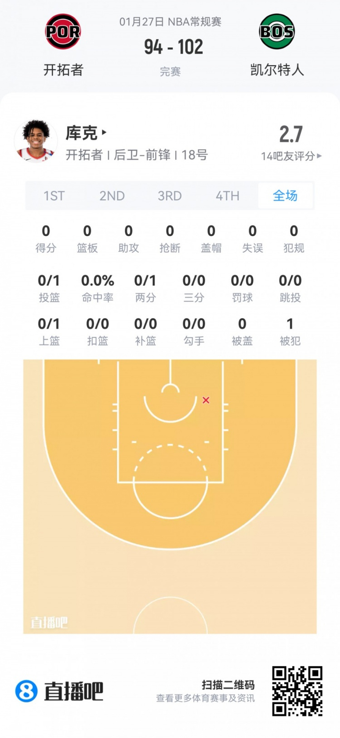 开拓者落选秀贾旺特·库克 登场4.2分钟