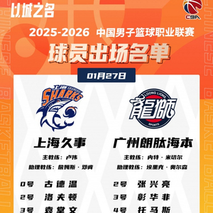 直播吧1月27日讯 今晚19:35,上海将在主场迎战广州,赛前大名单出炉。