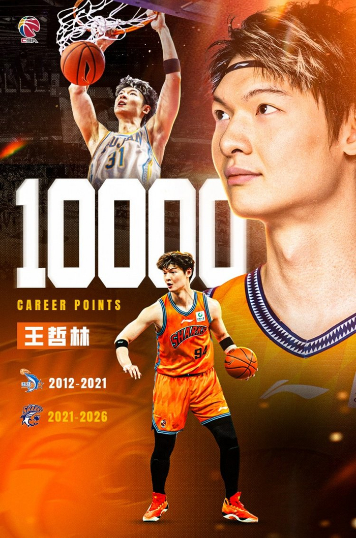 489场比赛!10000分大关!CBA官博祝贺王哲林成为第6位万分先生