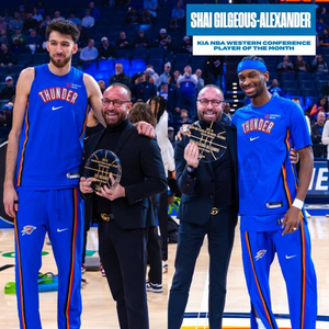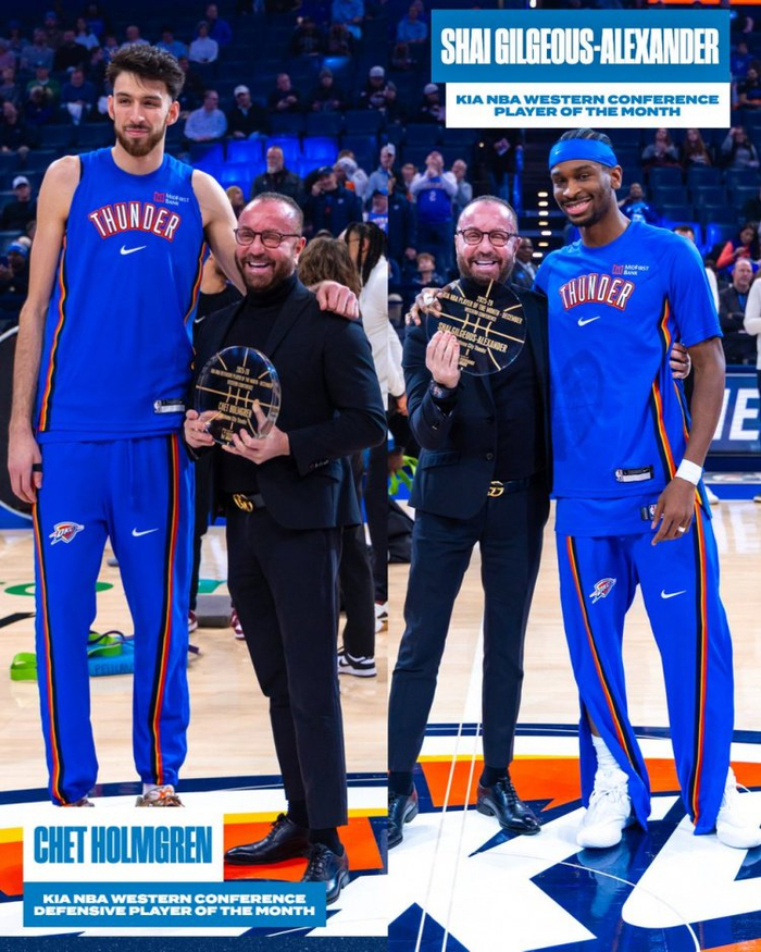 攻防领袖!SGA与切特赛前领取了12月月最佳和月最佳防守球员奖杯