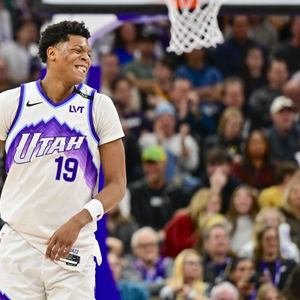 上半场,爵士5号秀贝利表现不错,半场结束的压哨三分球帮助球队完成反超,在14分钟的时间里,投篮8中5,三分球5中3,拿到13分1盖帽的数据。