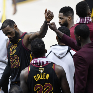 随后,詹姆斯带领骑士队进入了总决赛的第一场比赛——如果不是因为JR·史密斯在常规时间结束时的失误,以及在比赛还剩36秒时对金州勇士队凯文·杜兰特的一次阻挡犯规(导致勇士获得两分而不是一次进攻犯规失误),他们本可以赢得那场比赛。