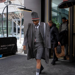 时尚猛男再来袭!短裤+灰色大衣+针织帽 你为英伦风威少打几分?