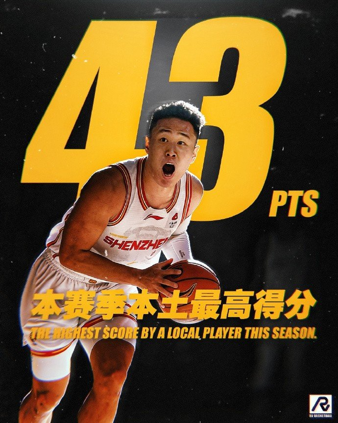 值得一提的是,43分是本赛季至今的本土球员最高得分。