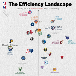 近10场攻防:快船攻防均第5净效率第3 黄蜂进攻第1 湖人防守第28