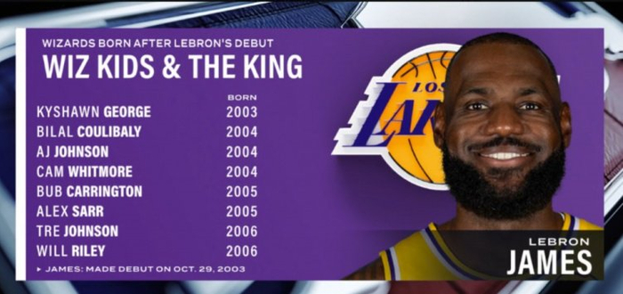 奇才阵中有8人在詹姆斯NBA首秀后出生 吹约和威尔·莱利生于06年