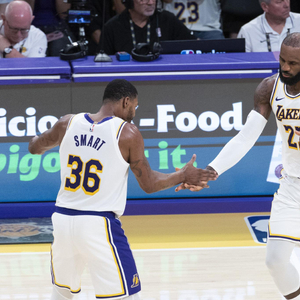 彻底打嗨了!艾顿前场篮板给斯玛特 直接吊传詹姆斯空接背扣!