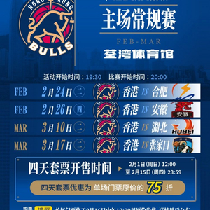 为方便球迷朋友们观赛,我们特推出针对2月24日、2月26日、3月10日、3月17日四个在荃湾体育馆进行的主场套票。与此同时,单场门票即将开售,请大家多多关注,希望在主场看到你的身影为我们呐喊助威!