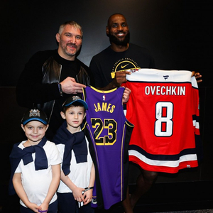 NHL华盛顿首都人队官方晒出奥维契金与詹姆斯赛后交换球衣片段