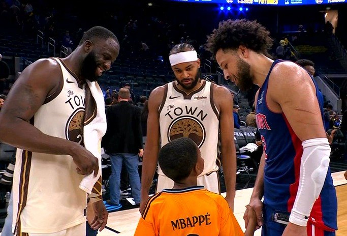 足篮联动!赛后追梦穆迪坎宁安聊天 追梦儿子身穿姆巴佩球衣现身