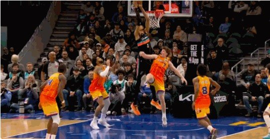 一寸长一寸强!文班亚马长臂空接灌框 克尼佩尔望”球“兴叹