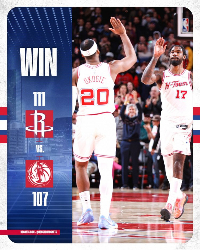 外线双煞!火箭官方发布赢球海报:封面人物是奥科吉和伊森