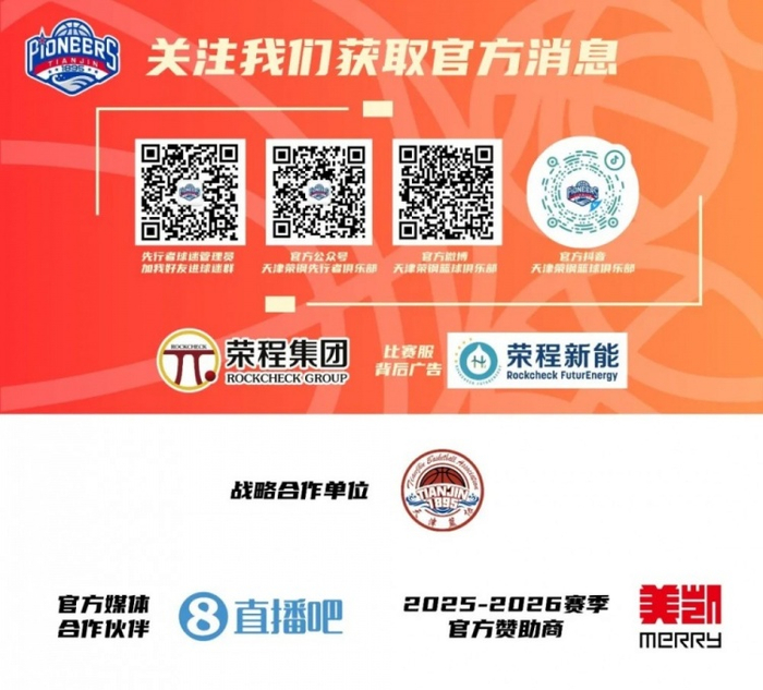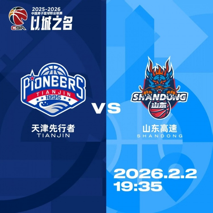 2月2日,2025-2026赛季CBA常规赛第23轮,天津先行者主场迎战山东高速。本场比赛为CBA潜力赛场次,天津5、抖音平台将直播本场比赛。这是春节前最后一次在主场与球迷并肩作战,期待先行者调整到最佳状态,在主场球迷的呐喊助威中全力出击、力拼胜利。共度篮球新春季,我们主场见!