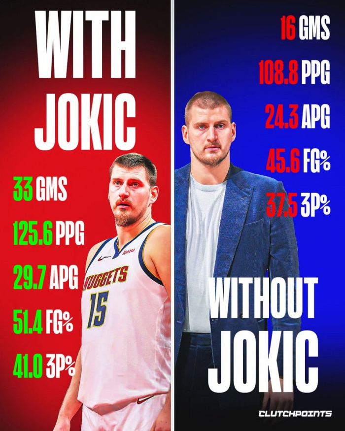 影响力!有约基奇掘金场均125.6分 无约仅108.8分&多项数据下跌
