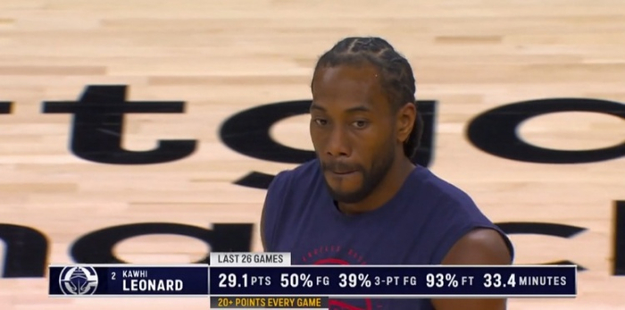 快船客场挑战太阳,转播方晒出伦纳德过去26场数据: