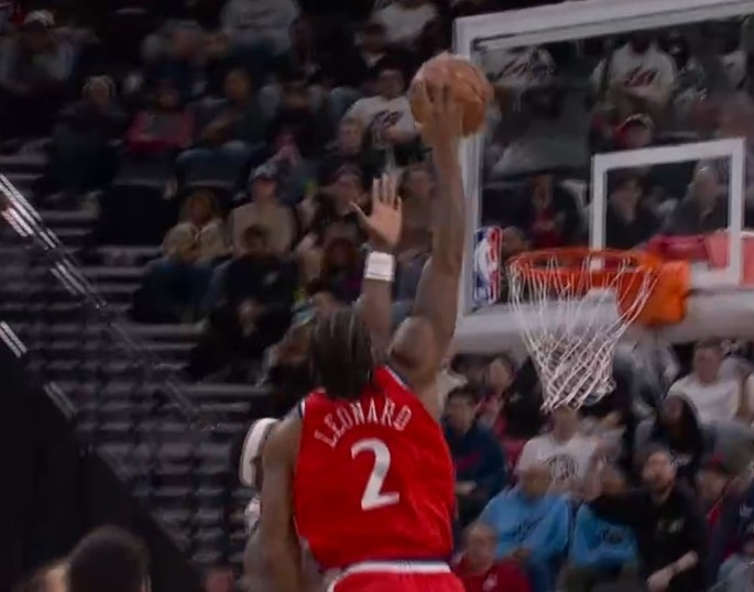 举火烧天!伦纳德弧顶遭遇夹击直接冲筐单臂砸扣博纳