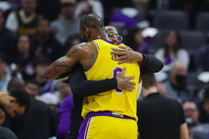 詹姆斯有很多不错的选择,包括去勇士追逐冠军并和斯蒂芬·库里一起打高尔夫。詹姆斯当然也可以和湖人再续约一年,但那里有明显的审美疲劳的迹象。就像他的朋友汤姆·布雷迪在新英格兰队末期“对贝利切克感到厌倦[2]”一样,詹姆斯在湖人看起来也“对巴斯(指的是珍妮·巴斯)感到厌倦”。