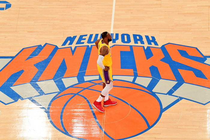 勒布朗·詹姆斯坐在麦迪逊广场花园的更衣柜前,正如当年帕特里克·尤因坐在这里一样,而尤因本人当晚也在场边观战——由于年岁增长,他的膝盖裹在厚厚的冰袋里,酸痛的双脚泡在冰桶里。