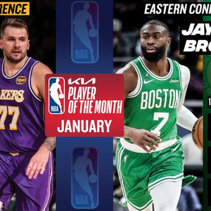 直播吧02月04日讯 NBA官方宣布,凯尔特人的杰伦·布朗和湖人的东契奇分别当选1月东西部月最佳球员。