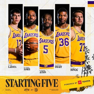 湖人:东契奇、斯玛特、拉拉维亚、詹姆斯、艾顿