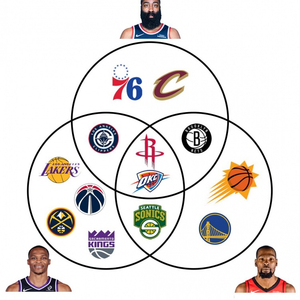 杜兰特&哈登&威少的三集合文氏图!三人均效力过火箭雷霆!
