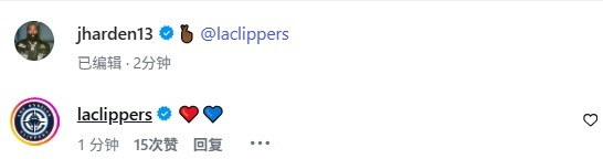 和平分手!哈登更新社媒告别快船:🤞 快船官方回应:️💙
