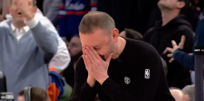 无语!布劳恩脚没动&阿努诺比被绊倒 吹进攻犯规&掘金挑战成功