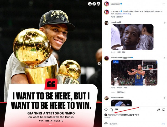 👀库里点赞!ESPN晒字母哥言论:我想留密尔沃基 但我更想赢球