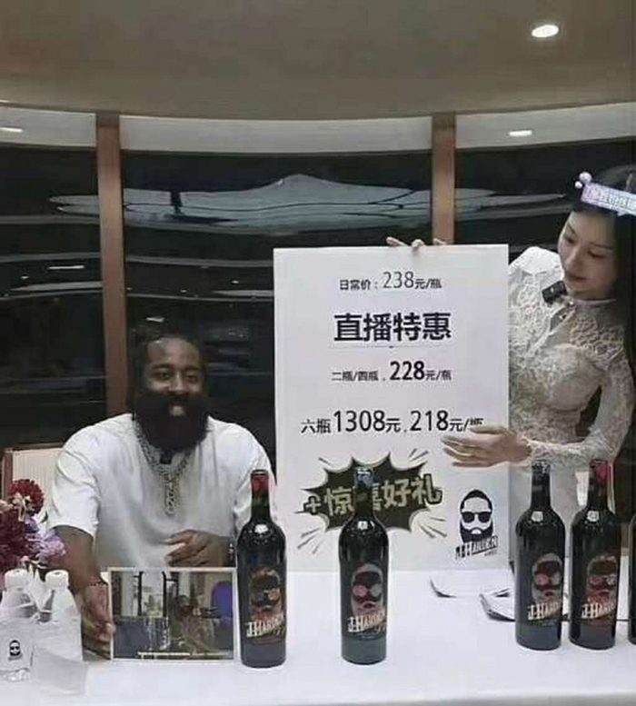 哈登在某直播间卖自己的J-HARDEN葡萄酒