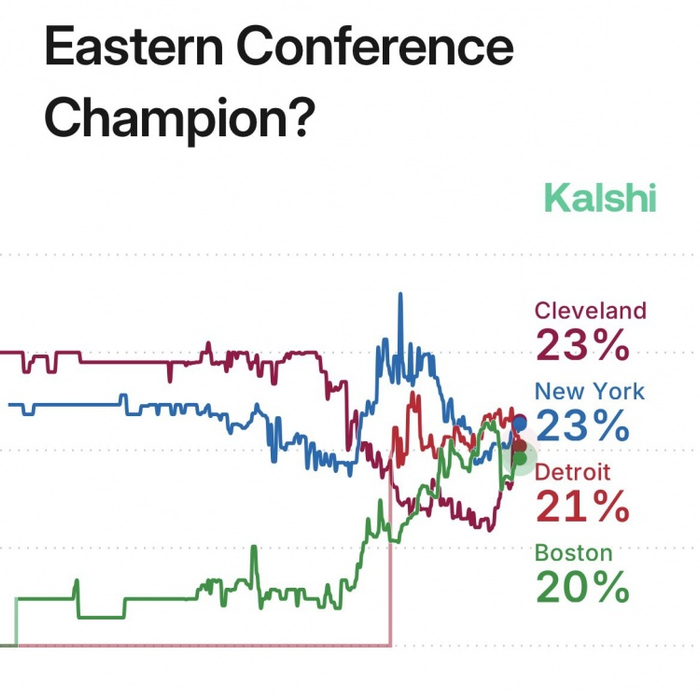 美媒更新本赛季东部冠军概率:骑士尼克斯并列第1 活塞第3绿军第4