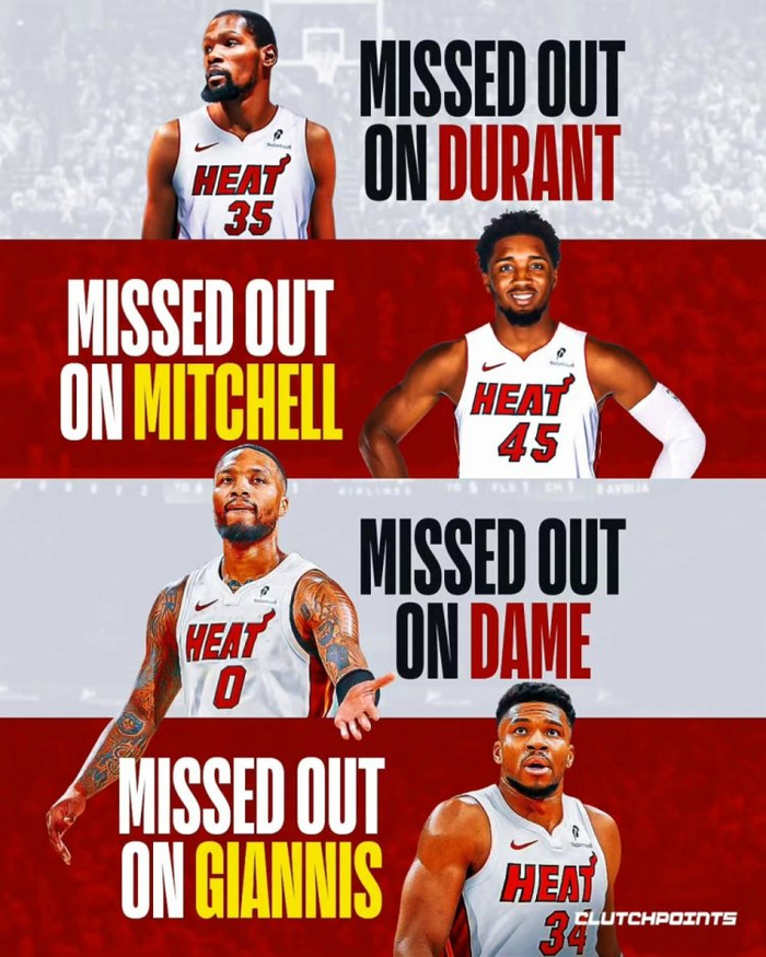 一无所获!近年热火接连错过KD/米切尔/利拉德/字母哥 曾三次追KD