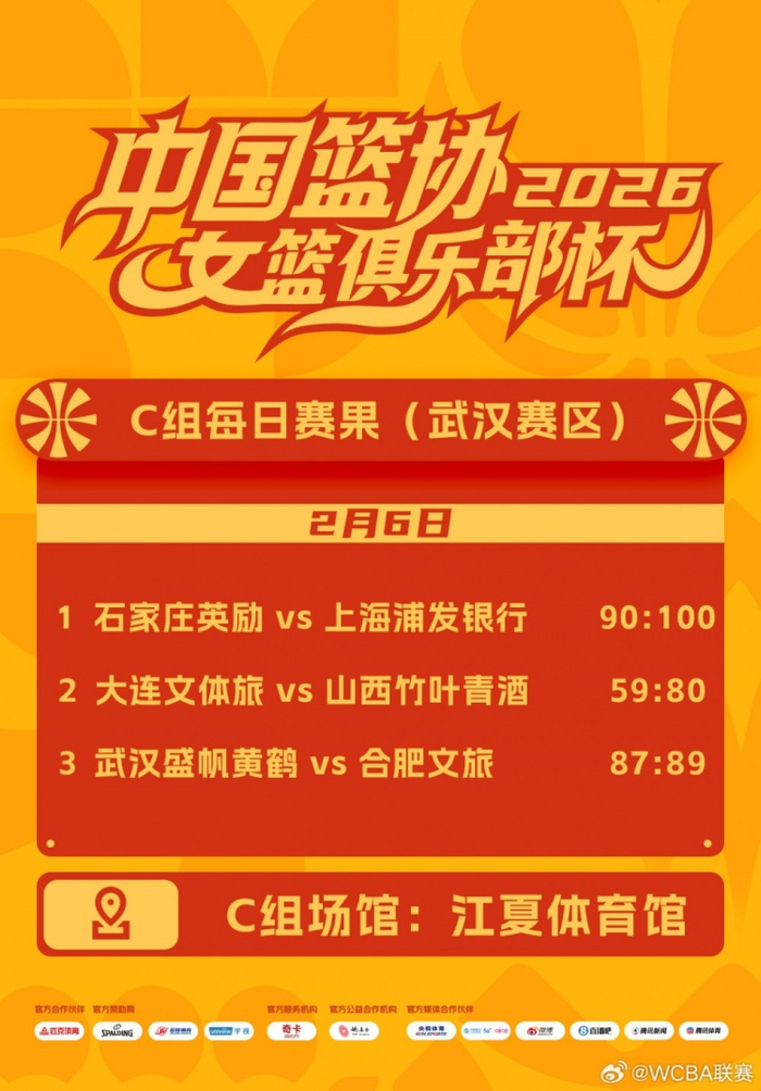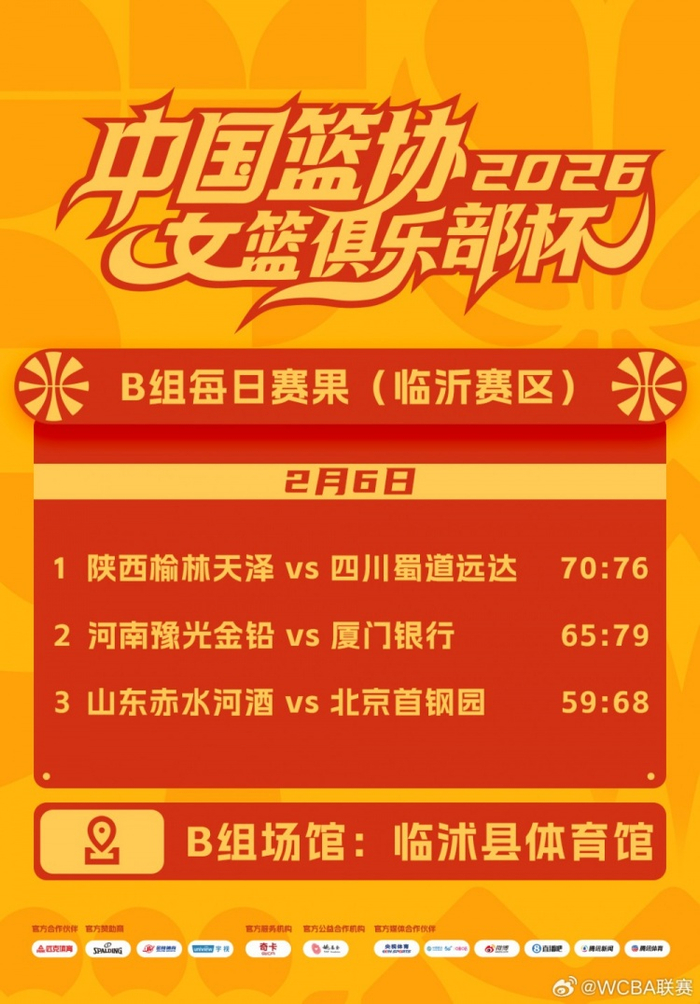 WCBA联赛2026年中国篮协女篮俱乐部杯 2月6日赛果来啦