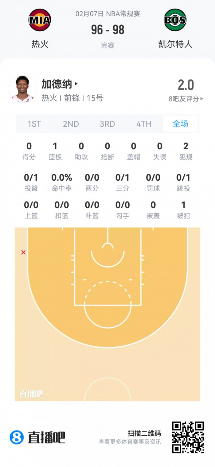 热火落选秀迈伦·加德纳 登场6分钟