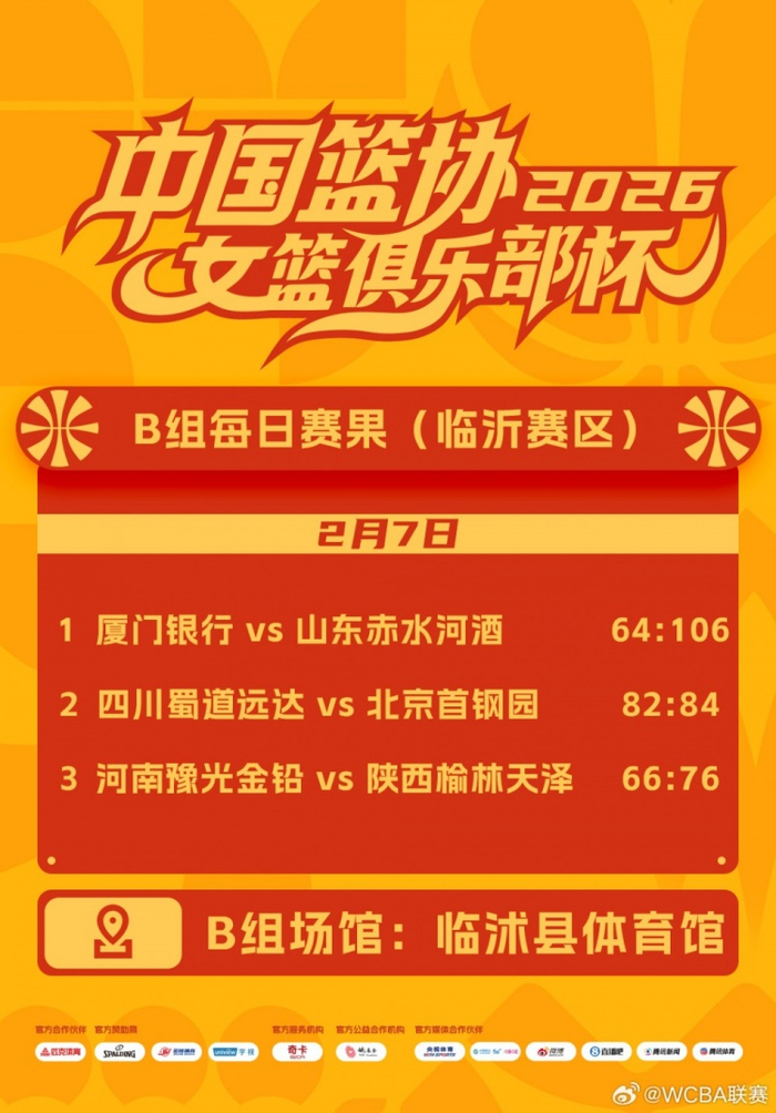 WCBA联赛2026年中国篮协女篮俱乐部杯 2月7日赛果来啦
