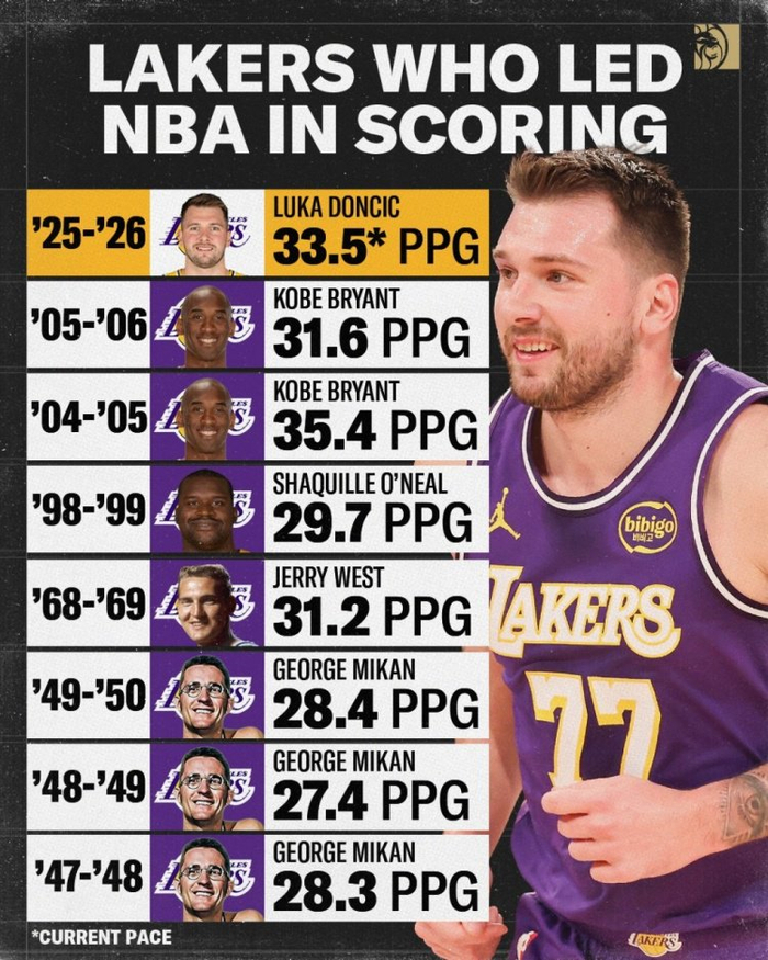 暂列得分榜第1!东契奇会成为湖人第5位联盟赛季得分王吗?