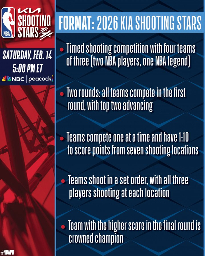 NBA官方还发布了新的投篮之星大赛规则,具体如下: