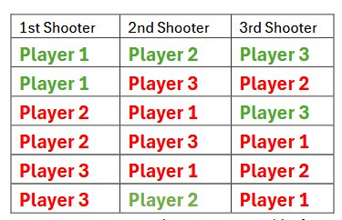 3、队伍中的每位队员都必须在每个位置进行投篮。每队在比赛开始前确定3名队员的投篮顺序,队伍中的队员必须按照此固定顺序在每个位置投篮。若没有按顺序进行投篮则不得分(除了第7个位置外,没有按顺序进行投篮的球员不得再次进行投篮)。具体违规情况见下方“违规”部分内容;
