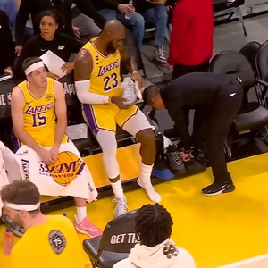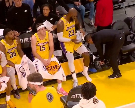 做出改变!首节表现不够理想 詹姆斯场边换双新鞋